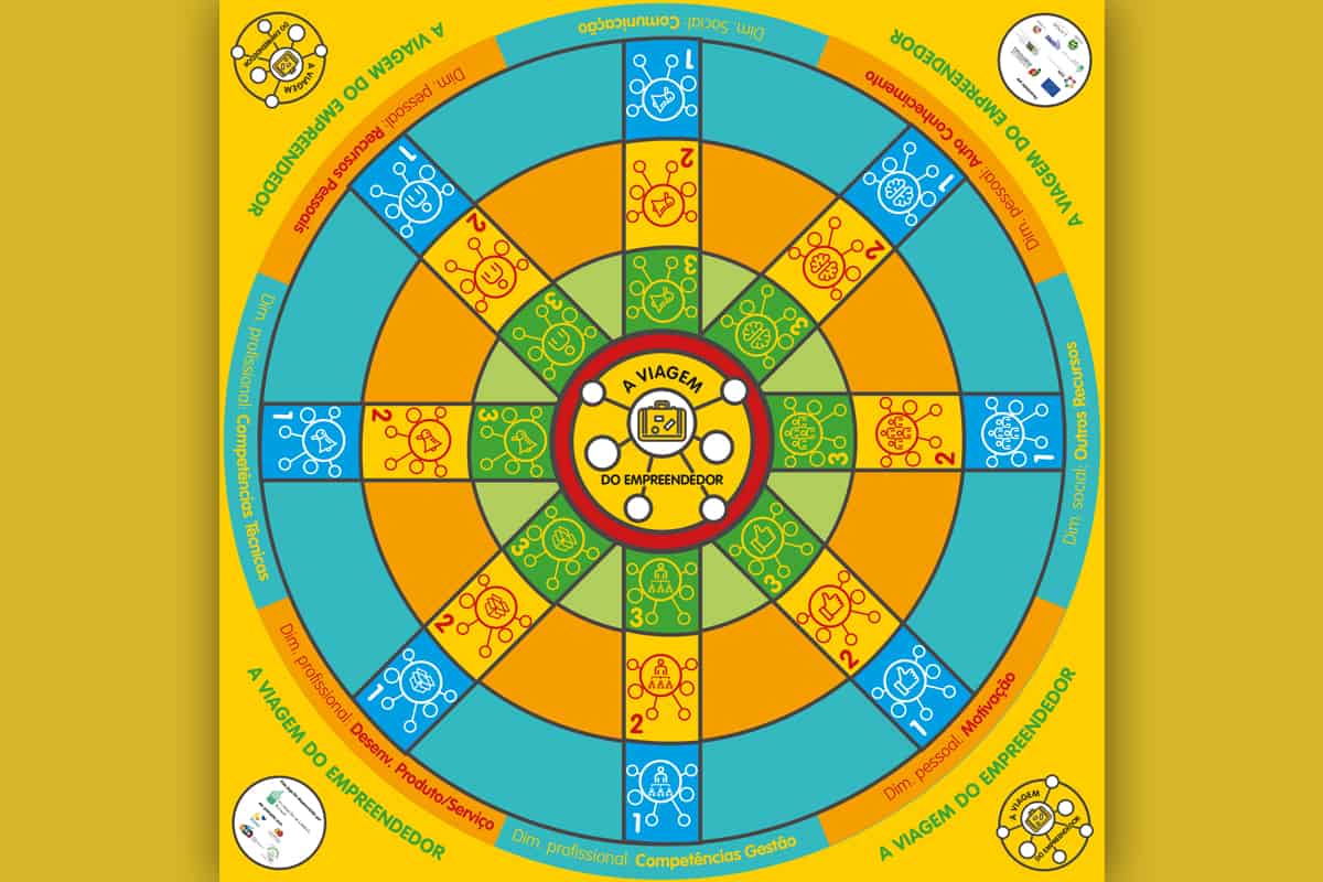 Contém um guia para dinamizadores/as, instruções, um tabuleiro e cartas de jogo divididas em 3 dimensões a serem trabalhadas: Competências Pessoais, Sociais e de Negócio.